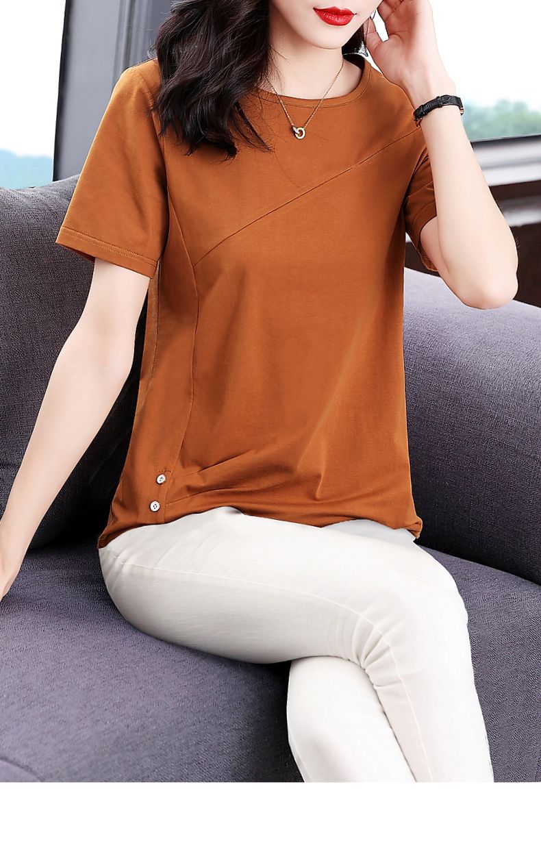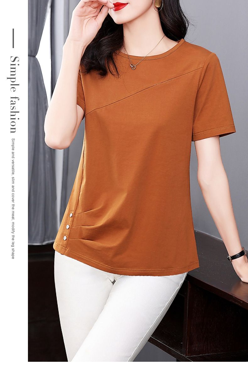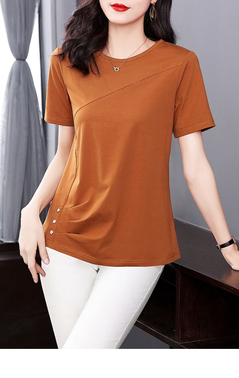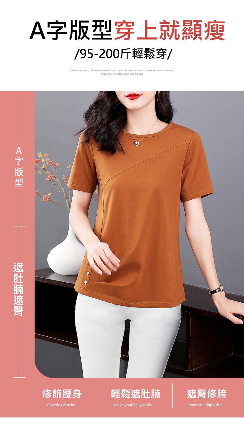 中年媽媽純色T恤【秒殺4件】【棕色】+【藍色】+【黑色】+【粉色】各一件(每件300元)