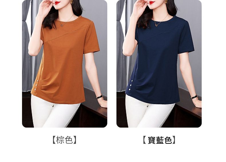 中年媽媽純色T恤【買一送一】【棕色】+【藍色】各一件(每件499元)