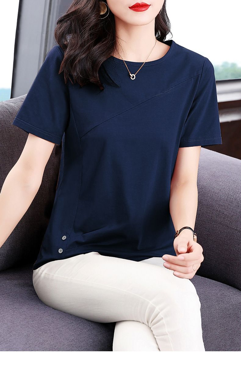 中年媽媽純色T恤【買一送一】【藍色】+【黑色】各一件(每件499元)