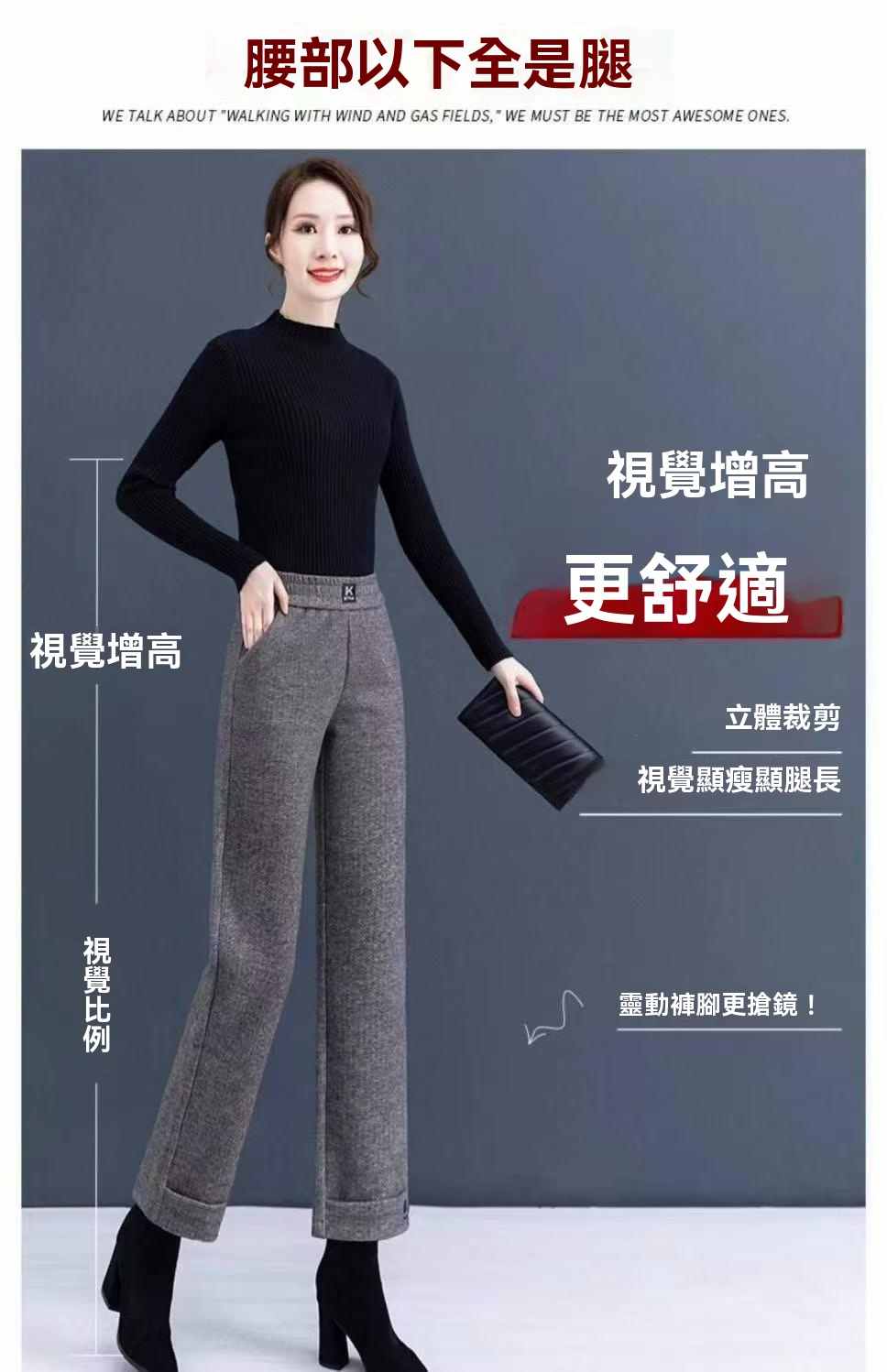 收腰收腹顯瘦顯高呢子媽媽闊腿褲【買一送一】黑灰色+淺灰色各一條(到手2條,每條均價549元!)