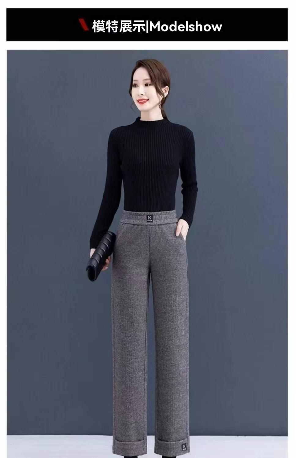 收腰收腹顯瘦顯高呢子媽媽闊腿褲【買一送一】黑灰色2條(到手2條,每條均價549元!)
