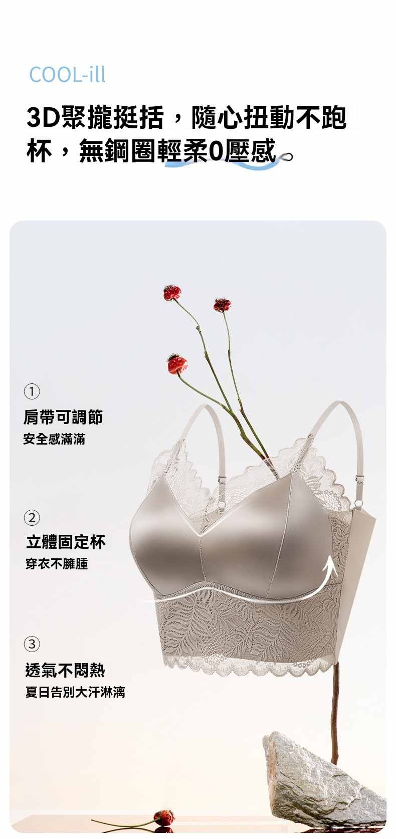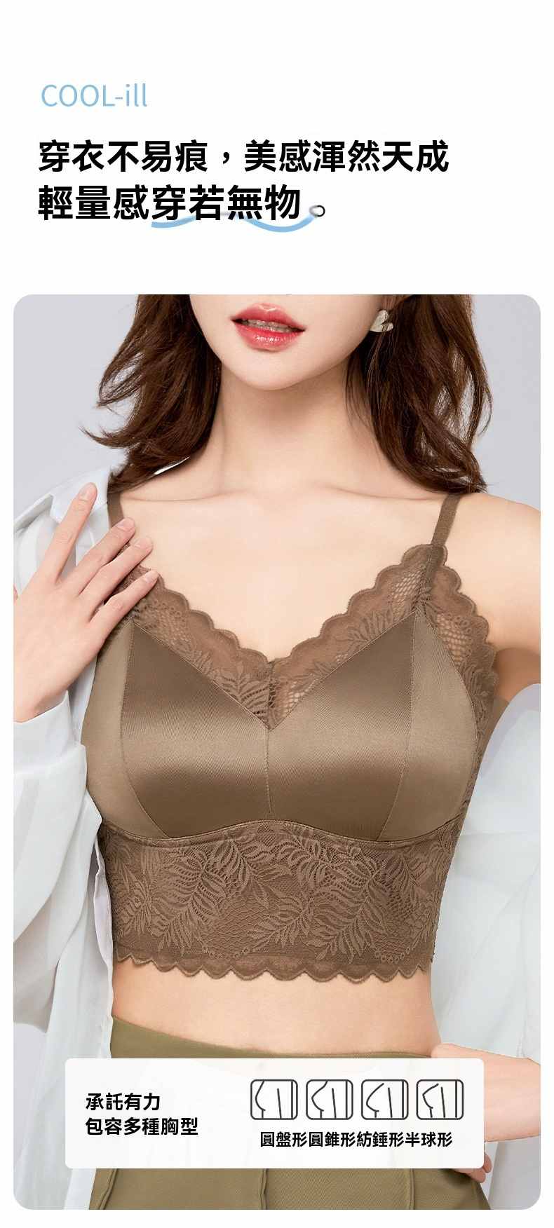 一體式無鋼圈固定杯美背文胸【白色】+【奶咖色】+【棕色】各一件(到手3件,每件均價333元!)