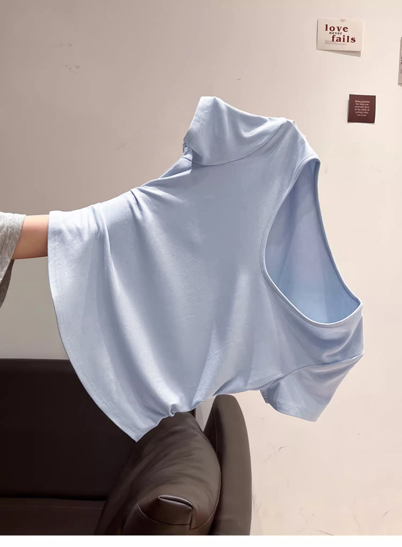 夏季短款褶皺收腰顯瘦高級V領T恤【買一送二】黃色+白色+藍色各一件(到手3件!每件均價333元!)