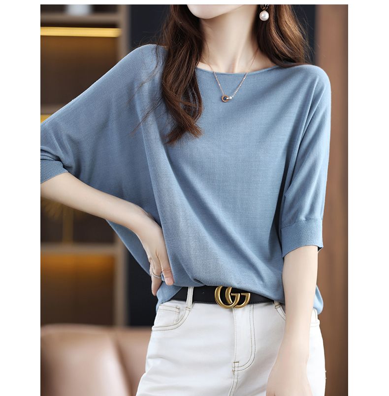 慵懶風洋氣中袖上衣【加400秒殺4件!】藍色+黃色+杏色+黑色各一件(到手4件!每件均價349元!)