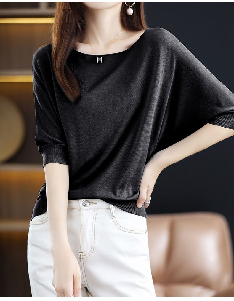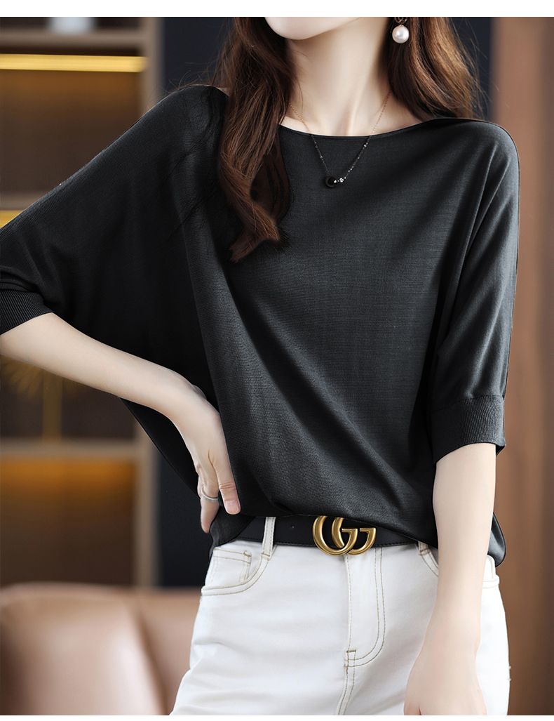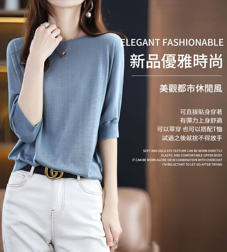 慵懶風洋氣中袖上衣【買一送一】藍色+黑色各一件(到手2件!每件均價449元!)